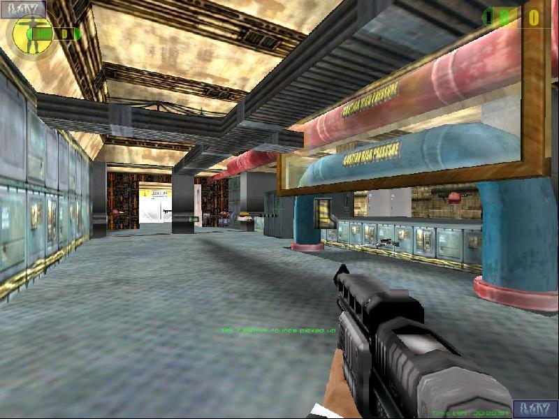 The map takes place in a working space station. The place looks lived in and patched up, not shiny and new (think MIR rather than something from the movies). The central feature of this map is a working multiplayer teleporter. Throw the switch and all players in the map get teleported to a special killing room. Arm yourself to the teeth and throw the switch. The teleporter is located in the reactor room (you'll have to blow the blast doors for access from the main area). The central section of the space station is augmented by a series of hidden passageways that all lead (eventually) to the teleporter. There are several rooms that offer rail firing on other sections of the map. This is a large map but gameplay is quick because the teleporter prevents camping. Throughout the game, there are a series of timed ambient sounds designed to help convey the chaos of a raging battle inside a space station. There are 19 spawn points and everyone spawns with weapons and some armor.