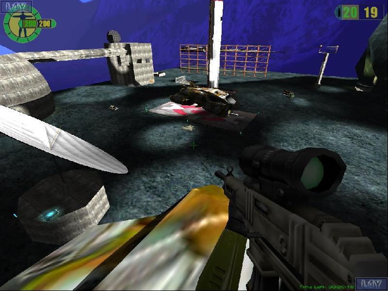 There are four ground vehicles that players can ride around in (two Armored Personnel Carriers and two Self-Propelled Rocket Launchers). There are two spaceships that players can fly around the map (a small Scout-Fighter and a large Destroyer). There are four working teleport switches (one in each main underground section and two hidden elsewhere in the map). This is a large map but there are insta-transit tubes connecting each section and plenty of jump-pads. Sniping opportunities are abundant but there will be room to room fighting in the main complexes. There are 34 spawn points and everyone spawns with armor and weapons. The map has player triggered sound effects and timed ambient sounds to help create the experience of battle in a spaceport.