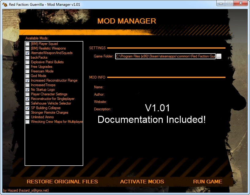 | Red Faction: Guerrilla Mod Manager v1.01 (With Documentation!) (newest) | 03/07/2014 | 33168 | [Download] |