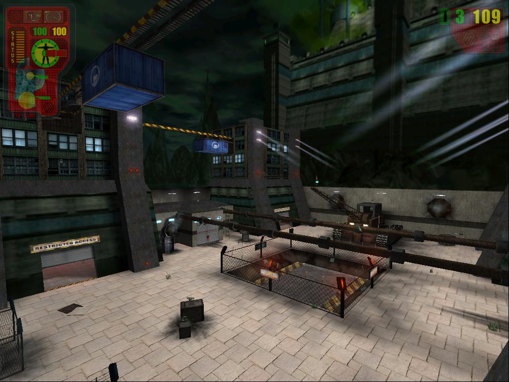 Just a quick fragger suitable for 3 or more players, so not many secrets this time. The map is set in a yard with an underground storage level, there are plenty of access points to and from both levels making for fast gameplay.
