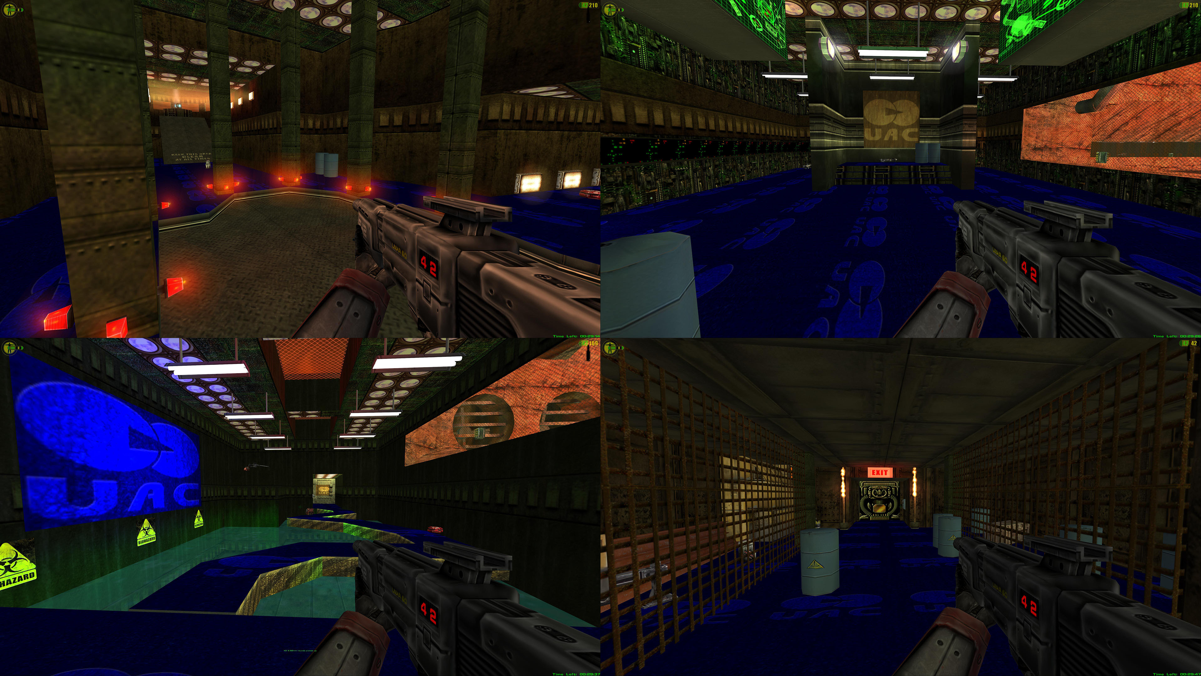 This is a remake of Doom 1 level 1 - Hangar. It's a mix of default RF textures and Higher resolution remakes of doom textures. It includes a bunch of music from Doom 1 Episode 1.