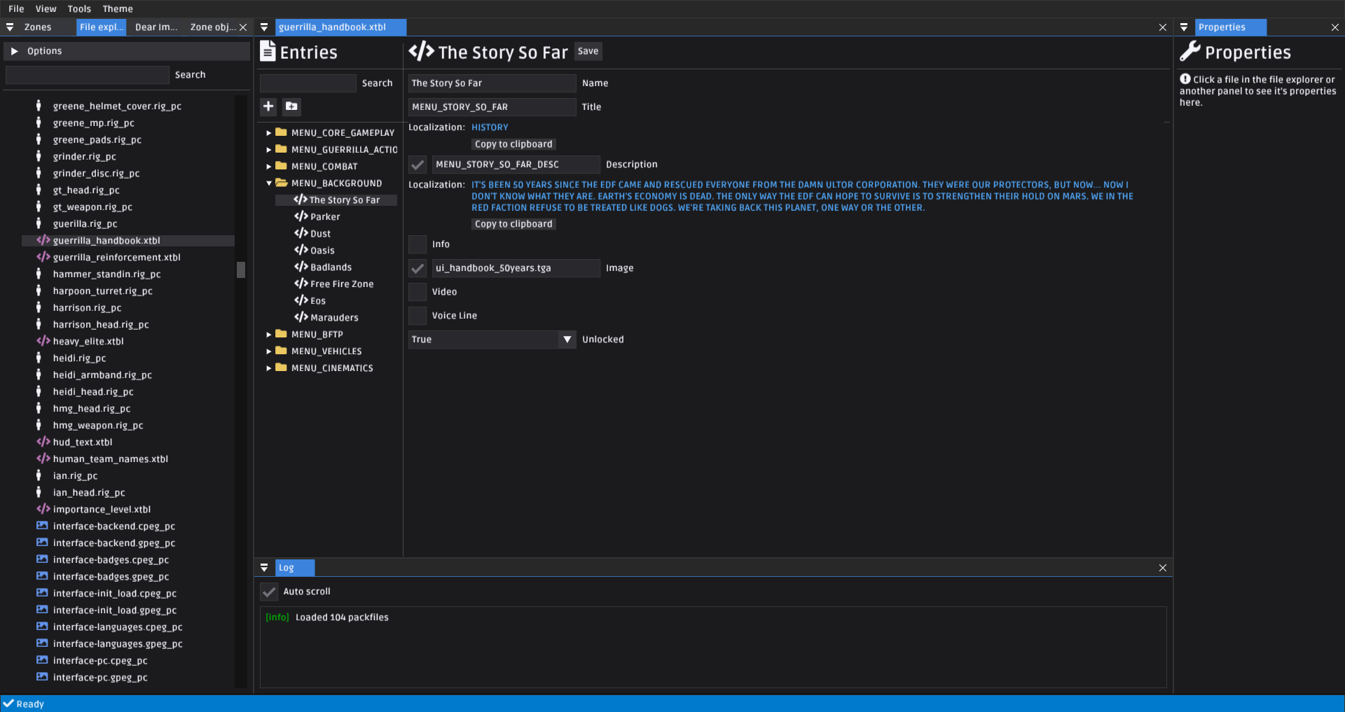 Initial support for viewing RFGs localized strings. Xtbls often use placeholder strings which are replaced at runtime with their localization. This release shows localizations next to placeholders in the xtbl editor.
