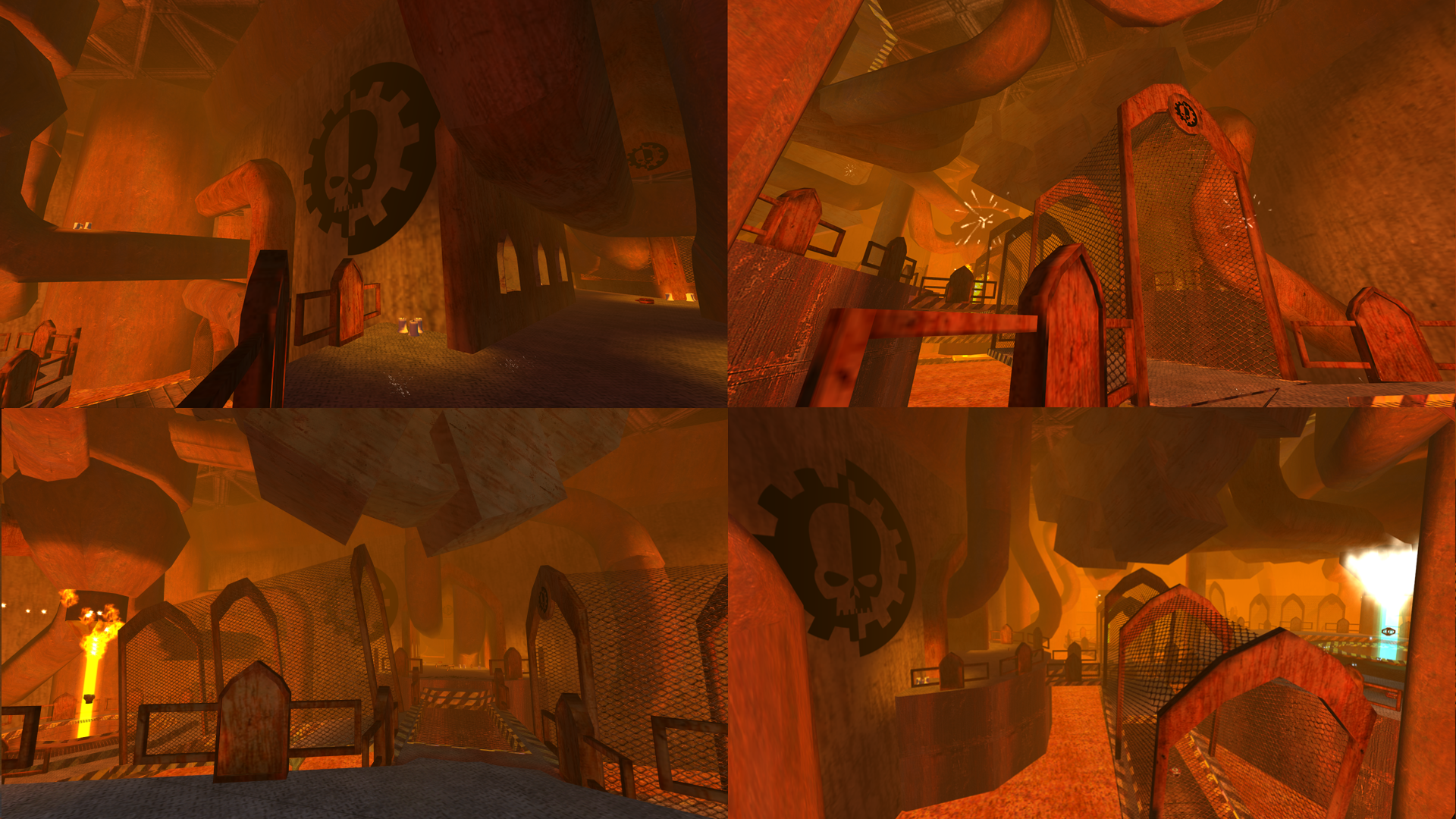 ⚠️ The file has been updated since this review was written. The comments may not apply to the newest version. Small arena-type map but rich in details with large pipes, gears, and hot machines. Guess this is where all the power-ups are manufactured. Even the music here really fits with the ambience as if i was expecting some sort of a duel or boss fight. lol Amazing work Phasmomancer!
