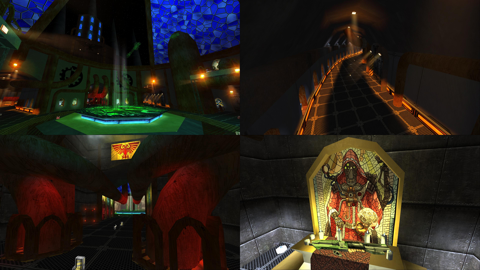 The map has a pretty solid and well structured layout. Long open winding hallways connecting some main chambers with some other passageways leading to upper/lower floors and some secrets scattered about. The overall feel is grandiose and somewhat menacing. The detail and pipework running throughout the map was really nicely done and adds a unique flavor to the map. I loved the holographic display and the terrain on the outside parts of the map, very well done. Also the music with haunting organs really does make it feel like a cathedral. Incredible map overall, can't wait to play it. |