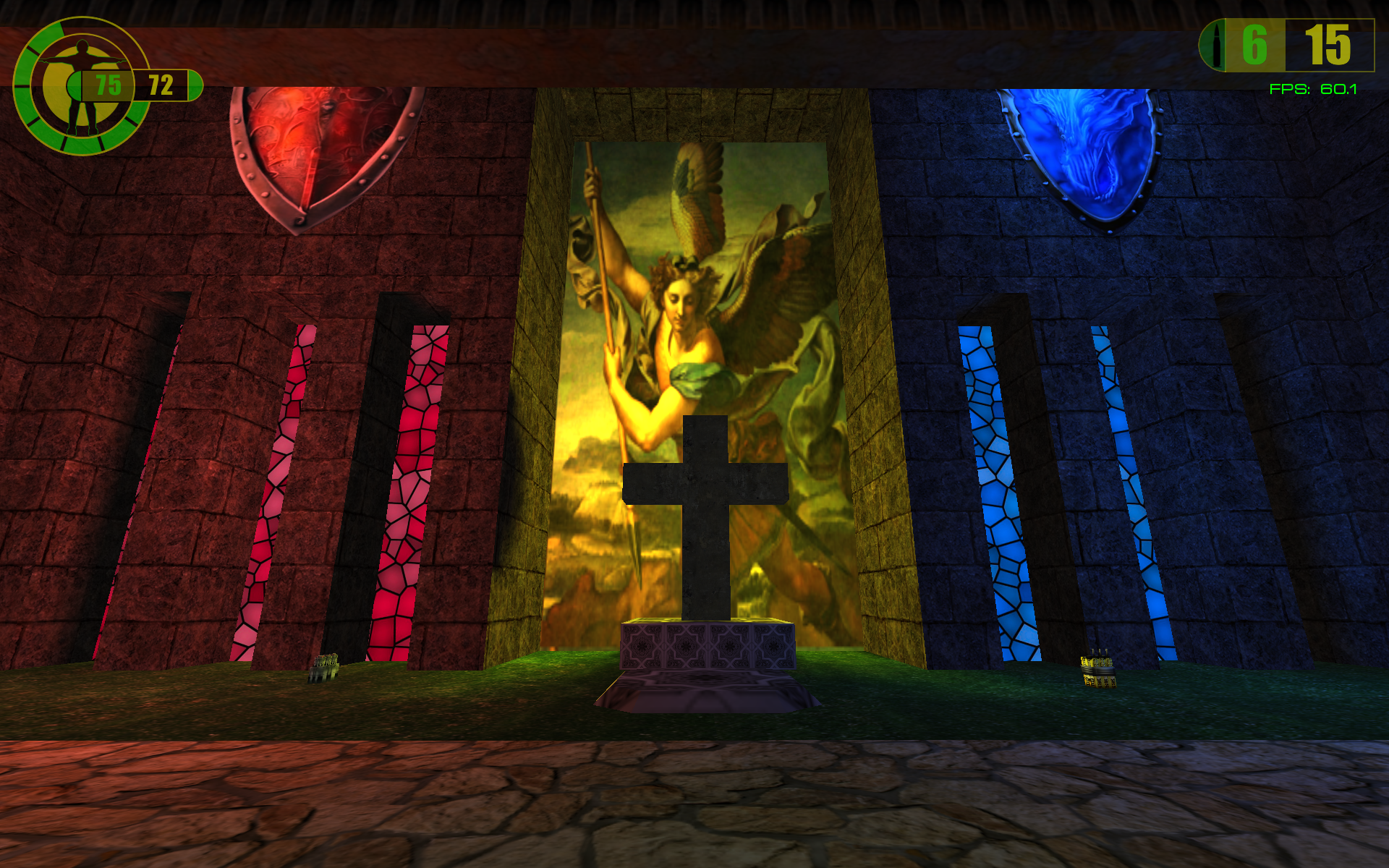 The layout architecture of this map is big and yet very well constructed to fuse 2 different castles with one courtyard in between the middle. It is what you'd expect from LSD's maps. Also love the angelic paintings all over the map and you even included again Vel's Lion Statues at the both of castle's entrances. Nice going with the colorful holographic shields as well. Recommend this map when you have a handful of players in a server.