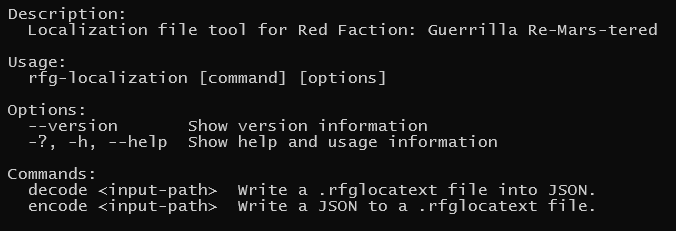 A tool made to decode, edit, and encode localization string files (.rfglocatext) for Red Faction: Guerrilla Re-Mars-tered.