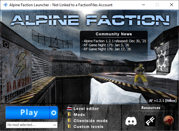 | Alpine Faction 1.2.1 (Willow) (you are here) | 12/31/2025 | 463 | [Download] |
